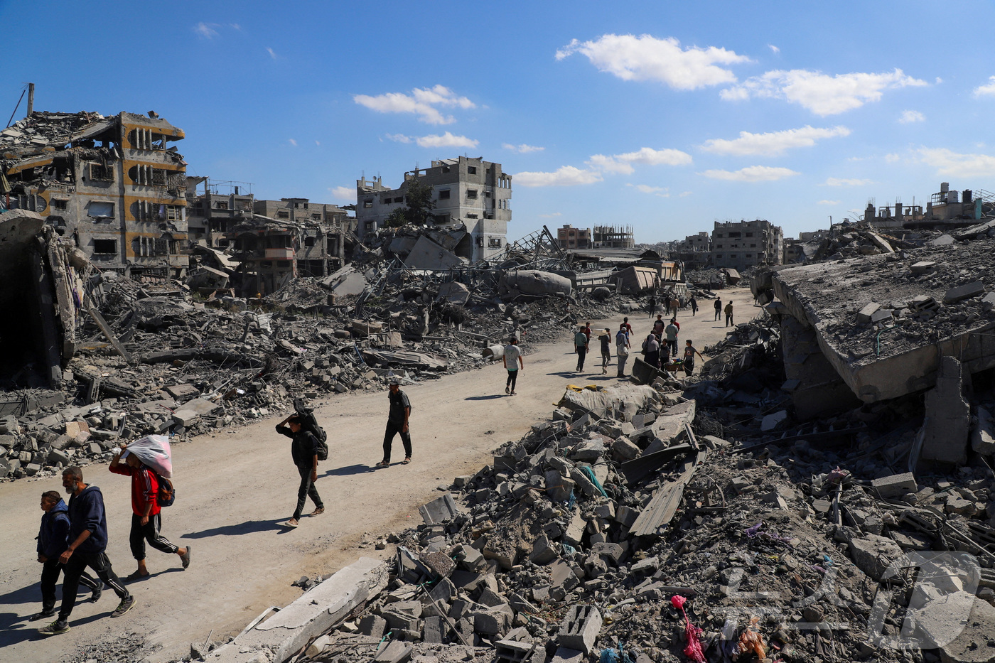 이스라엘과 하마스가 휴전에 돌입한 가운데 지난 14일(현지시간) 전쟁으로 파괴된 가자시티의 거리를 팔레스타인 주민들이 지나고 있다. 2025.10.14. ⓒ 로이터=뉴스1 ⓒ News1 류정민 특파원 |