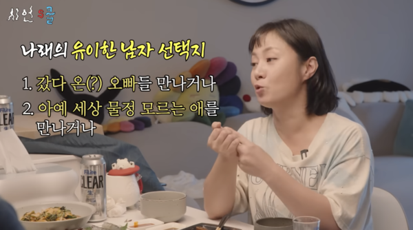 박나래는 15일 공개된 이시언의 유튜브 채널 '미안하다 나래야..이시언이 박나래에게 사과한 이유는?' 편에 출연했다. 이시언은 자신의 집에 박나래를 초대해 집밥을 함께 했다.