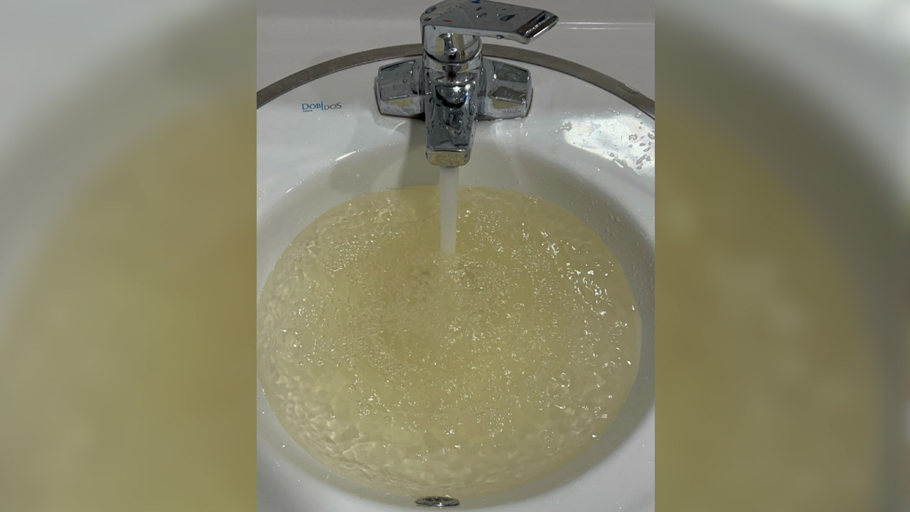 ▲ 경기 파주시 운정신도시 일대에 탁수가 공급돼 주민들이 불편을 겪고 있다. 사진은 15일 세면대 수도에서 나오는 탁수의 모습