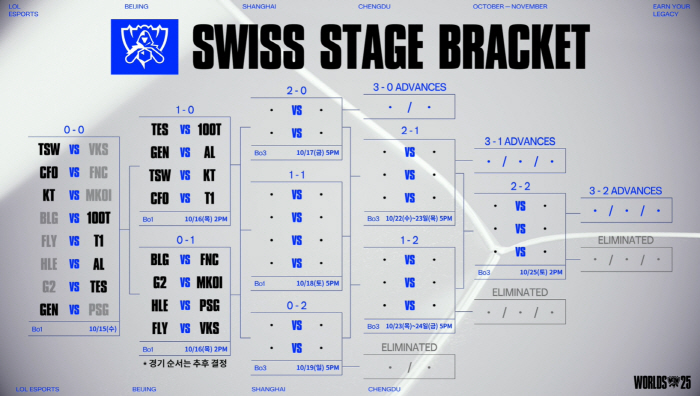 반면 한화생명은 LPL(중국)의 강호인 AL(애니원즈 레전드)에 발목을 잡히며 2라운드에서 1패조에 속하게 됐다. 지난 2023년부터 도입된 스위스 스테이지는 똑같은 전적의 팀끼리 계속 맞붙어 3승을 올리면 녹아웃 스테이지(8강)에 진출하고, 3패를 기록하면 탈락하는 방식으로 진행된다.