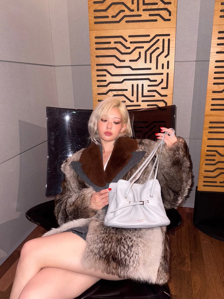 사진 속 그는 퍼 재킷과 셋업 수트를 매치해 고급스러우면서도 도회적인 분위기를 자아냈으며, 미니 백과 하이힐로 포인트를 더해 스타일을 완성했다.
