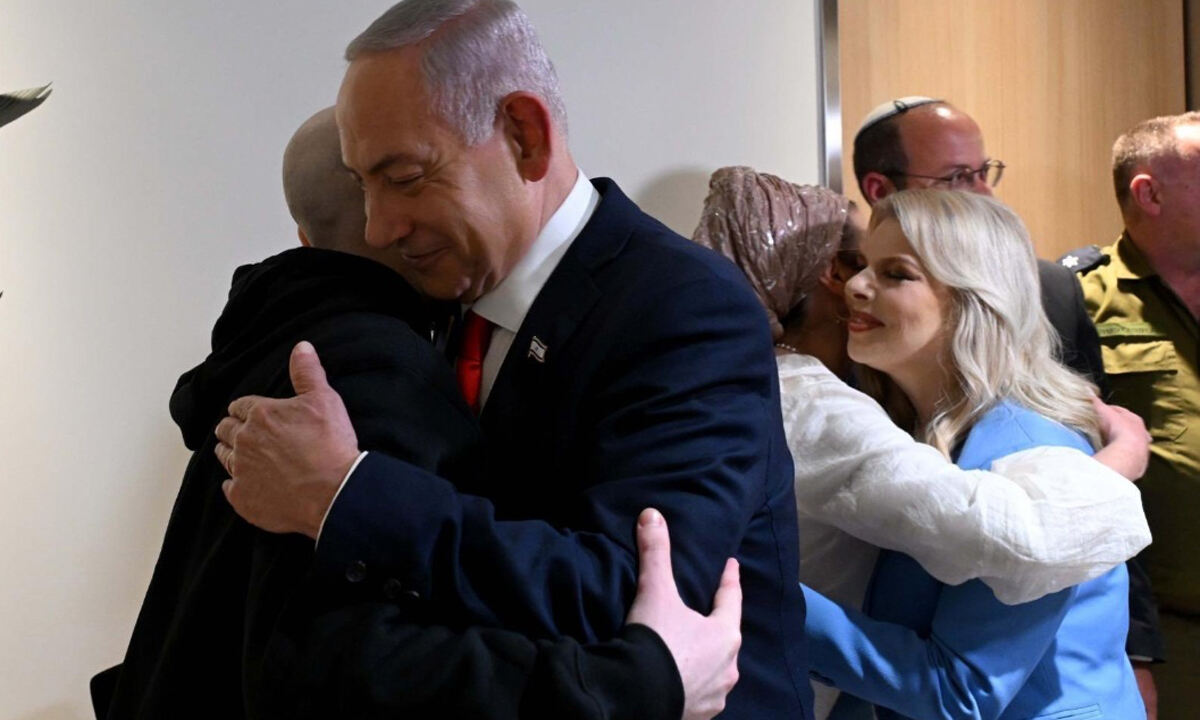 베나민 네타냐후 이스라엘 총리가 14일(현지시간) 하마스에 인질로 붙잡혔다가 최근 풀려난 시민들이 입원해 있는 병원을 찾아가 한 생존 인질과 포옹하고 있다. 네타냐후는 불과 하루 뒤인 15일 법정에 출석해 심각한 기관지염 증세를 들어 재판 단축을 호소했는데, 이를 두고 ‘총리가 면역력이 취약해진 석방 인질들을 감염 위험에 빠뜨린 것 아니냐’는 지적이 제기됐다. 오른쪽의 푸른색 재킷을 입은 여성은 네타냐후의 부인 사라 네타냐후 여사. SNS 캡처 |