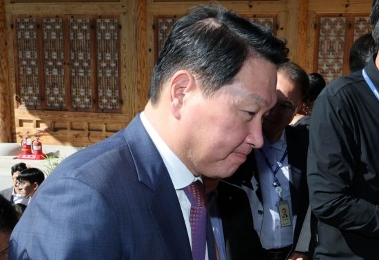 최태원 대한상공회의소 회장이 15일 국회 사랑재에서 열린 사회적 대화 공동선언식장으로 들어서고 있다. |