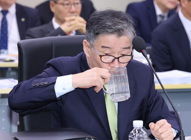 유철환 국민권익위원장이 16일 정부세종청사에서 열린 국회 정무위원회 국정감사에서 물을 마시고 있다. 연합뉴스 |