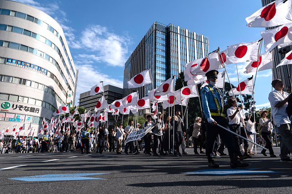 지난 8월 15일 일본 도쿄 야스쿠니 신사 인근 거리에서 제2차 세계 대전 종전 80주년 기념행사가 열리고 있는 모습. [게티이미지] |