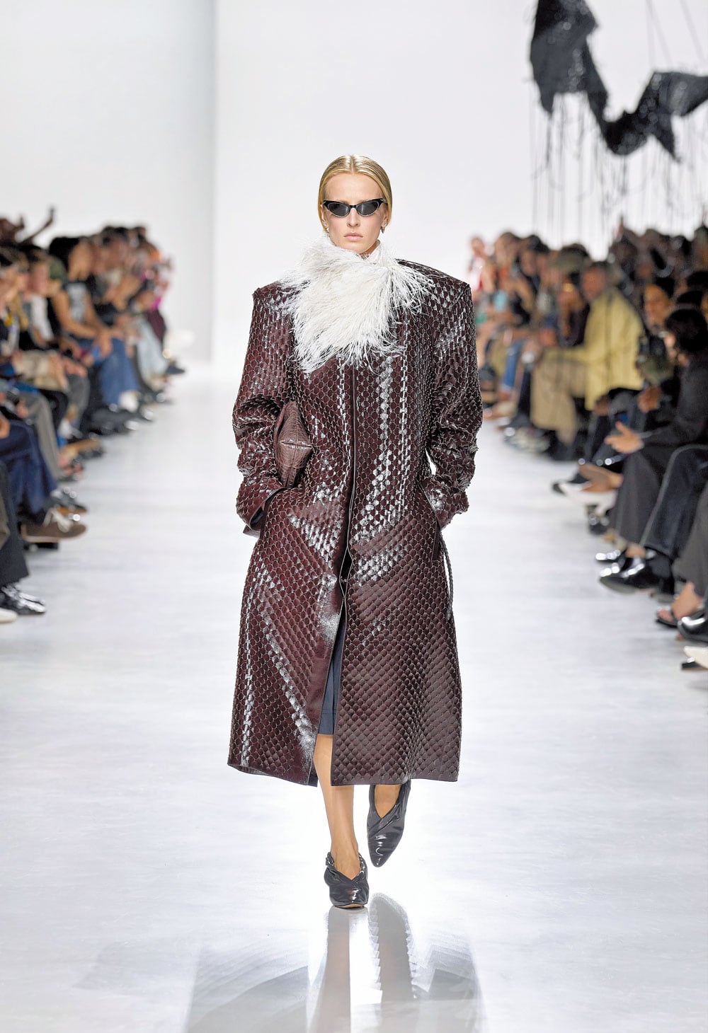 샤이니 레더 올오버 인트레치아토 코트. 루이스 트로터가 하우스의 시그니처 위빙을 자신만의 스타일로 재해석한 룩이다. /보테가 베네타 |