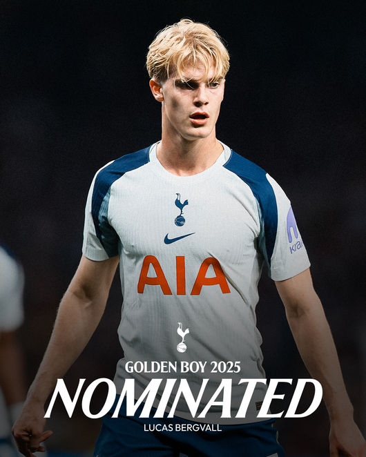 토트넘은 16일(한국시간) 구단 홈페이지를 통해 "그레이와 베리발이 2025 골든 보이 최종 후보에 올랐다. 이탈리아 매체 '투토 스포르트'가 주관하는 이 상은 기자들이 뽑은 '유럽 국가 1부 리그에서 1시즌간 가장 인상적인 활약을 펼친 21세 이하 선수'에게 수여하는 상이다"라고 공식 발표했다.