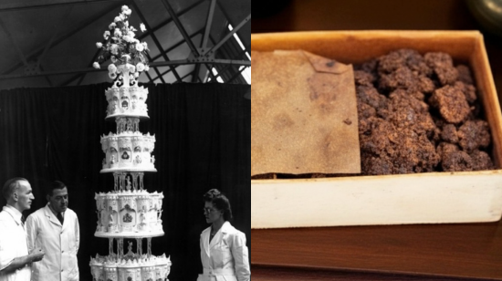1947년 11월 20일 거행한 엘리자베스 2세 여왕의 왕실 결혼식에는 높이 2.7m, 무게 226㎏에 달하는 4단짜리 케이크가 축하를 위해 사용됐다. 이 케이크는 스코틀랜드 제과업체 맥비티앤프라이스(McVitie and Price)의 수석 제과장 프레데릭 슈어가 주도해 만든 것으로 알려졌다. 당시 이 웨딩케이크는 전쟁 후 희망의 상징으로 영연방 전역의 재료로 만들었으며, 결혼식 이후 2000조각으로 나뉘어 여러 단체와 개인에게 선물로 전달했다. 이번에 경매에 나온 케이크 조각은 50년 넘게 왕실에서 직원으로 일한 시릴 딕먼에게 전달된 것으로, 그는 2012년 85세의 나이로 사망했다.