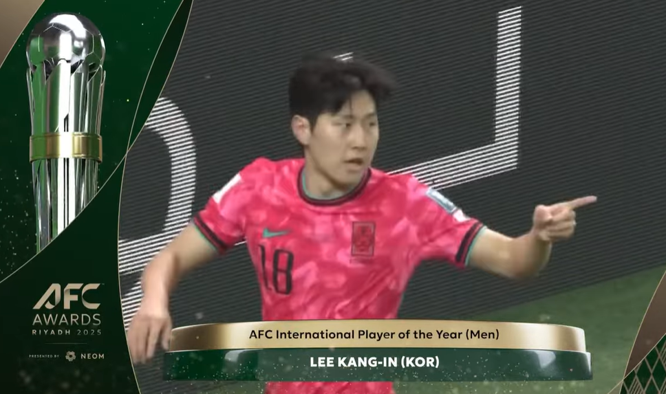 이강인은 17일(한국시간) 사우디아라비아 리야드의 킹 파하드 문화센터에서 열린 '아시아축구연맹(AFC) 어워즈 2025'에서 '올해의 국제선수상' 수상자로 선정됐다.