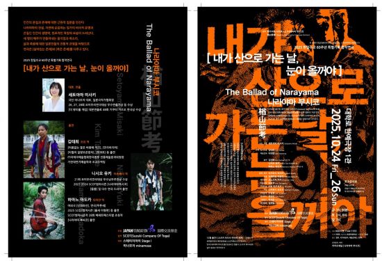 공연기획사 스테이지아이는 한일수교 60주년을 기념해 한일 합작 연극 나라야마 부시코를 오는 24~26일 서울 대학로 한예극장1관에서 공연한다고 17일 밝혔다.