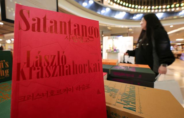 매주 출판 담당 기자의 책상에는 100권이 넘는 신간이 쌓입니다. 표지와 목차, 그리고 본문을 한 장씩 넘기면서 글을 쓴 사람과, 책을 만드는 사람, 그리고 이를 읽는 사람을 생각합니다. 출판 기자가 활자로 연결된 책과 출판의 세계를 격주로 살펴봅니다.2025년 노벨문학상을 수상한 헝가리 소설가 크러스너호르커이 라슬로의 책들이 10일 서울 종로구 교보문고 광화문점에 진열돼 있다. 뉴스1 |