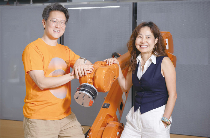 오혜진 미국 카네기멜론대 교수(사진 오른쪽): 컬럼비아대 컴퓨터공학 석사/ 카네기멜론대 언어정보공학 박사/ 카네기멜론대 로보틱스연구소 교수(현) 현박 기술 기반 아티스트(왼쪽): MIT Media Arts and Sciences 석사/ 카네기멜론대 로보틱스연구소 책임연구원(현) [윤관식 기자] |