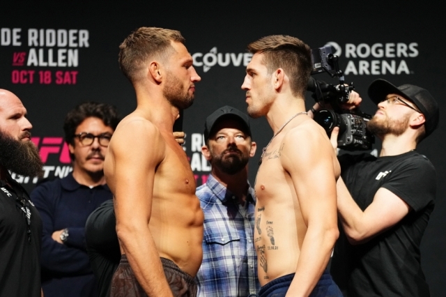 오늘 열린 계체량에서 더 리더(21승 2패)와 앨런(25승 7패)은 모두 84.4kg으로 미들급 일반 경기 계체를 통과했다. 조부모가 캐나다 출신인 앨런은 팬들을 향해 “여러분들을 위해 멋진 쇼를 선보이겠다”며 “더 리더를 피니시하겠다”고 각오를 전했다. UFC 입성 1년 만에 5연승에 도전하는 더 리더는 “미친 한 해였다”며 “앨런을 끝내버리겠다”고 다짐했다.