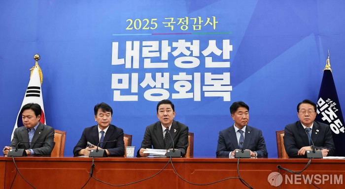 [서울=뉴스핌] 윤창빈 기자 = 김병기 더불어민주당 원내대표가 19일 오전 서울 여의도 국회에서 열린 국정감사 및 현안 기자간담회에서 발언하고 있다. 2025.10.19 pangbin@newspim.com
