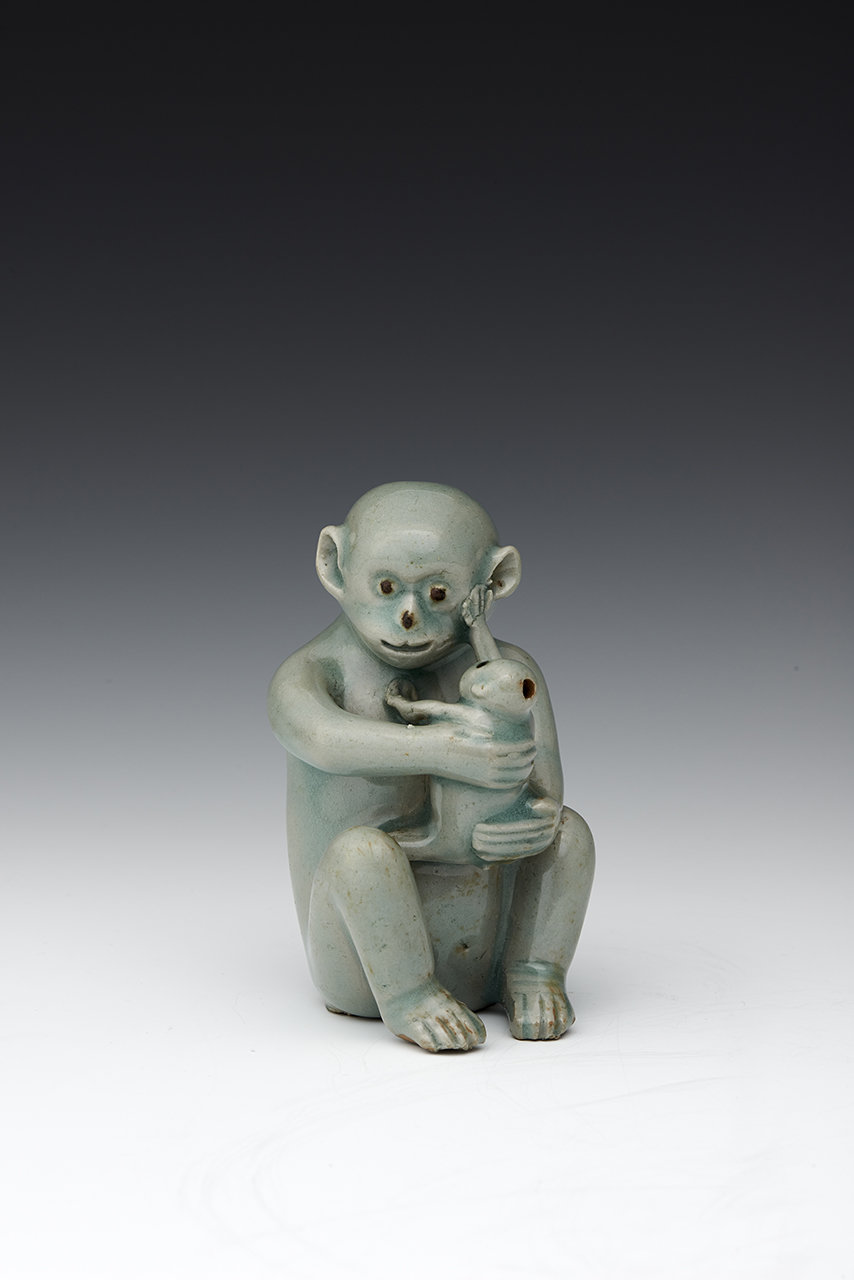 새끼 원숭이의 작은 손가락이 어미의 뺨을 어루만지고 있다. 두 팔로 새끼를 받쳐 안은 어미의 표정에서는 온화한 사랑이 묻어난다. 12세기 제작된 ‘청자모자원숭이형연적(국보)’은 남아 있는 고려청자 가운데 흔치 않은 원숭이 모양으로, 몸통의 맑은 비색과 철채로 표현된 이목구비가 아름다운 작품이다.