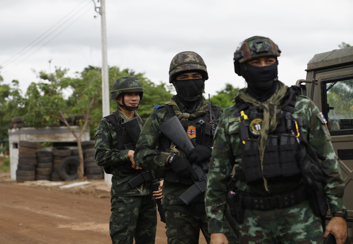 지난 10일 태국 사카오주 반농야카우에서 태국 군인들이 캄보디아 정착민들을 내쫓은 후 지역을 순찰하고 있다. EPA연합뉴스 |