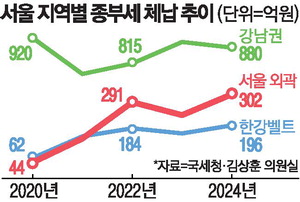 서울 내에서도 비강남권의 증가세가 가팔랐다. 서울지방국세청 관내 세무서별로 보면 성동(29억원→97억원), 마포(15억원→38억원) 등 '한강벨트' 체납액이 증가했다. 반면 강남(189억원→98억원), 역삼(233억원→159억원) 등은 감소했다.