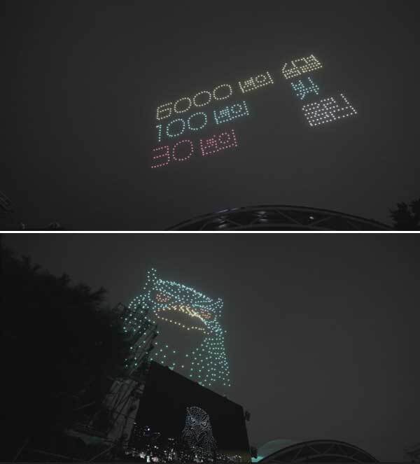 ‘6000년의 역사 발견’이라는 키워드를 강하게 각인시킨 드론쇼는 이후 선사인 형상이 성화봉을 들고 달리는 모습, 성화대에 불을 붙이는 개막식 성화 점등을 상징하는 모습 등을 연출하며 축제의 의미를 더했다.