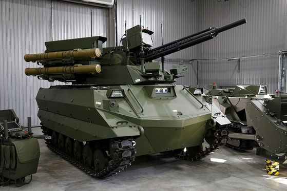 기관포와 대전차 미사일로 무장한 우란-9 무인전투로봇. 미 육군 |