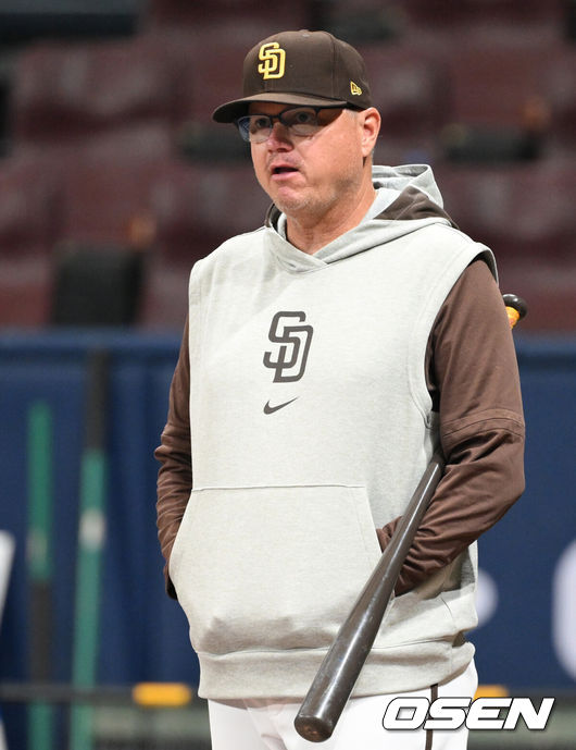 [OSEN=고척, 이대선 기자] 19일 서울 고척스카이돔에서 ‘메이저리그 월드투어 서울 시리즈 2024’ 샌디에이고 파드리스 공식 훈련이 진행됐다.샌디에이고 파드리스 마이크 쉴트 감독이 선수들을 바라보고 있다. 2024.03.19 /sunday@osen.co.kr |