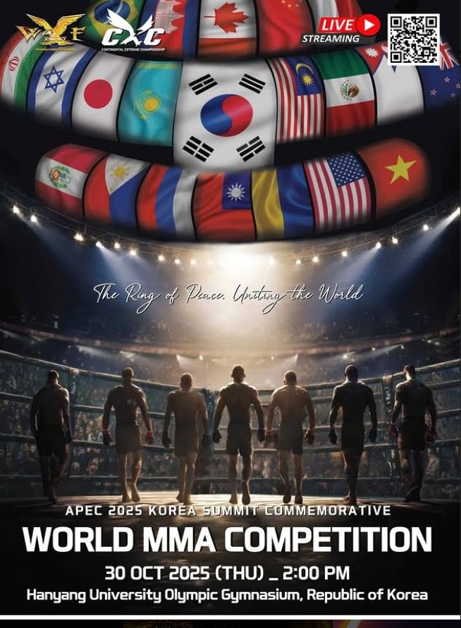2025 APEC 정상회의 기념 세계종합격투기대회가 오는 30일 오후 2시 서울 성동구의 한양대학교 올림픽체육관에서 개최된다.