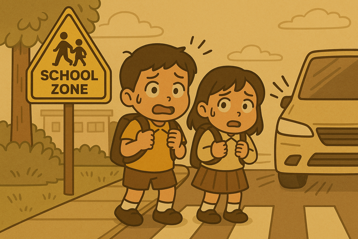 스쿨존 교통사고를 두려워하는 어린이들. 챗GPT |
