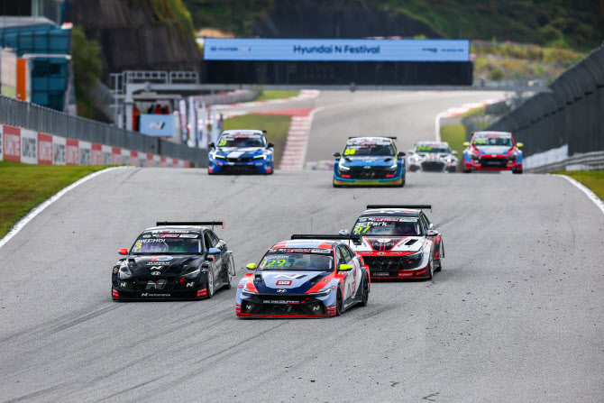 강원도 인제에서 열린 ‘2025 TCR 월드투어’ 한국 레이스에서 질주하는 현대자동차 ‘BRC 현대 N 스쿼드라 코르세’ 팀 ‘더 뉴 엘란트라 N TCR’ 경주차 (사진=현대차) |