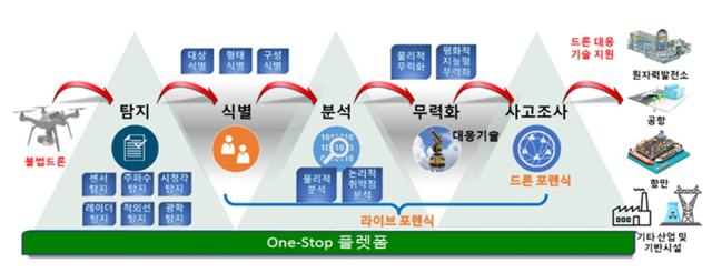 구체적으로 레이더·광학(EO)·적외선(IR) 등 지상기반 감시체계와 공중에서 불법드론을 제압하는 '드론캅(Drone-Cop)'을 통합해 지상과 공중 전천후 대응 능력을 검증한다.