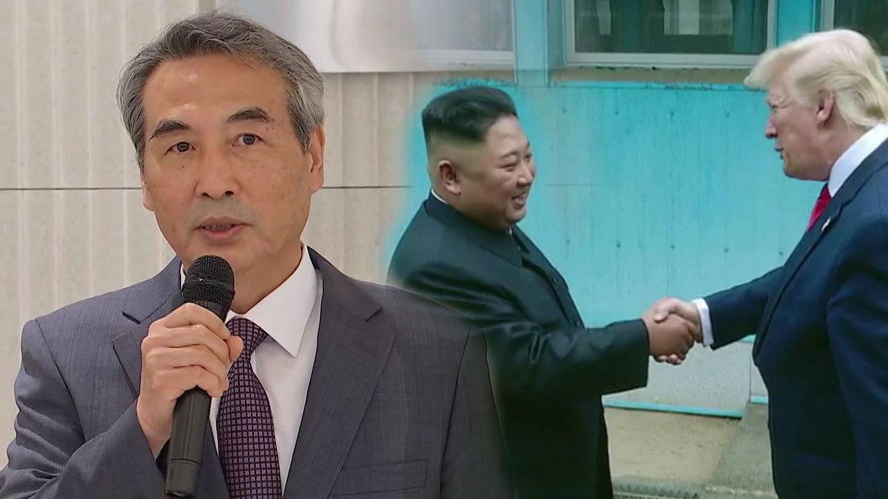 ▷ 편상욱 / 앵커 : 알겠습니다. 두 번째 주제도 짧게 짚어보겠습니다. 깜짝 만남, 이 물음표가 쳐져 있는 거 보니까 트럼프 미국 대통령과 김정은 국무위원장의 만남이 추진되는 것 같아요.