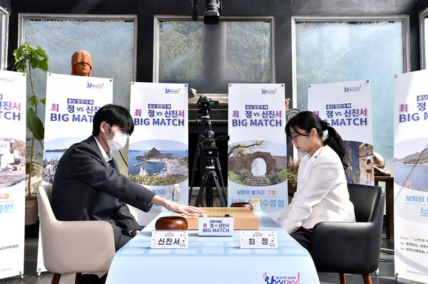 신진서가 20일 충남 보령시 개화예술공원 내 모산미술관에서 열린 ‘충남 방문의 해, 최정 대 신진서 빅 매치’ 2국에서 최정 9단에게 126수 만에 백 불계승을 거뒀다. 신진서는 전날 1국에 이어 2연승을 달렸다. 특히 신진서는 이날 초반부터 한번도 흐름을 내주지 않는 압도적인 힘으로 이른 시간에 승패를 갈랐다.