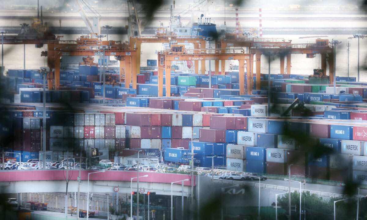 경기 평택시 포승읍 평택항에 수출용 컨테이너들이 쌓여있는 모습. 뉴스1 |