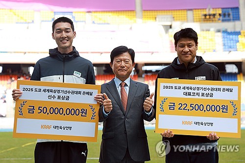 연맹은 "올해 국제대회에서 메달을 획득하거나 국내, 국제대회에서 한국 신기록(부별 한국기록 포함)을 경신한 선수에게 지급된 포상금이 총 8억원, 육상영재에게 지급된 장학금은 총 7천만원 규모에 달한다"고 전했다.