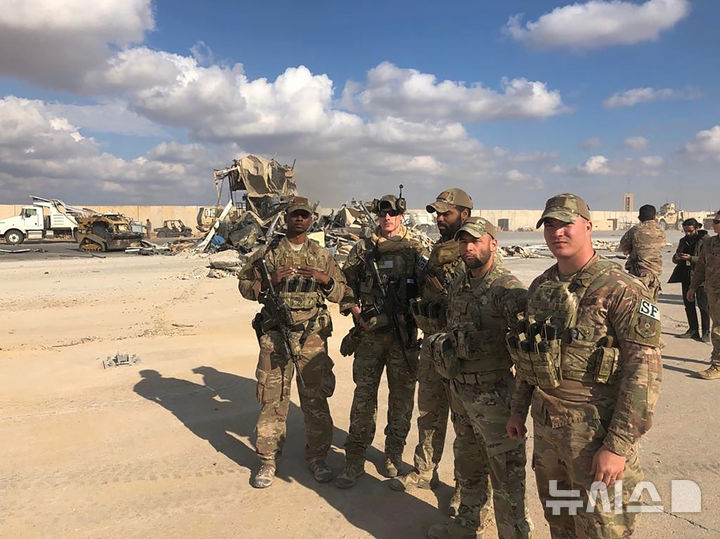 [안바르=AP/뉴시스] 이라크 안바르에 있는 아인 알아사드 공군기지에 배치된 미군 병사들. 자료사진. 2025.10.20 |