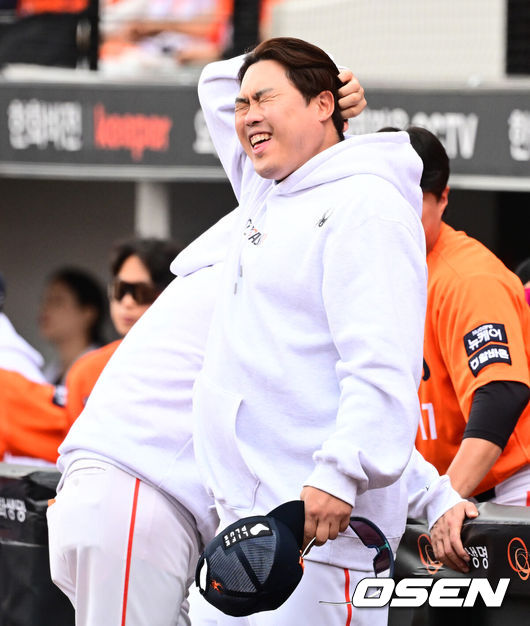 [OSEN=대전, 이대선 기자] 17일 오후 대전 한화생명볼파크에서 2025 신한 SOL Bank KBO리그 포스트시즌 플레이오프 1차전 한화 이글스와 삼성 라이온즈의 경기가 열렸다. 경기에 앞서 한화 류현진이 훈련 중인 선수들을 바라보고 있다. 2025.10.17 /sunday@osen.co.k |