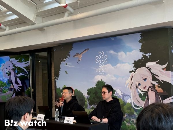 (왼쪽부터) 강민철 넥슨 마비노기 모바일 사업실장과 이진훈 데브캣 마비노기 모바일 디렉터가 지난 20일 서울 성수동에서 진행된 '마비노기 모바일' 인터뷰에 참석해 기자들의 질문에 답변하고 있다./사진=왕보경 기자 |