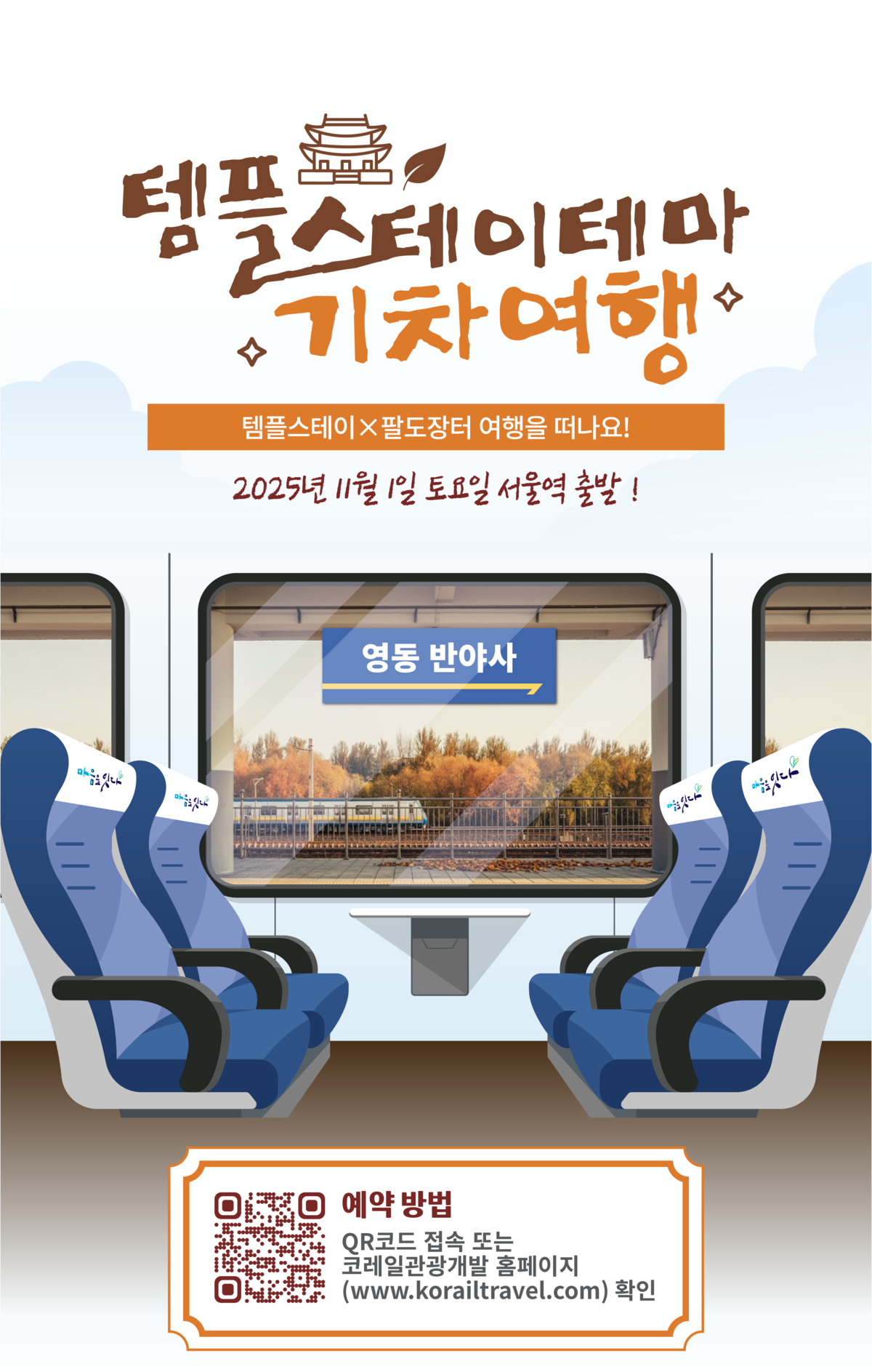 한국불교문화사업단은 코레일관광개발과 함께 11월1일 서울역에서 팔도장터관광열차를 타고 출발하는 당일형 ‘템플스테이 테마 기차여행’ 상품을 운영한다고 21일 밝혔다.