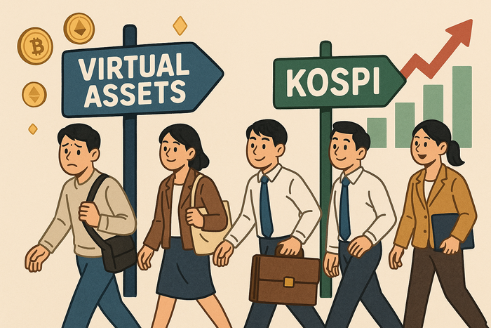 가상자산 시장의 부진과 코스피의 약진이 지속되면서 한국 가상자산시장의 거래대금이 코스피의 18% 수준으로 줄어든 것으로 나타났다.