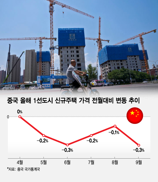 신규주택 가격만 하락한 게 아니었다. 올해 3분기 부동산 개발 투자는 전년 동기 대비 13.9% 급감했다. 신축주택 판매면적과 판매액도 같은 기간 각각 5.5%, 7.9% 줄었다. 국가통계국은 3분기 전체 고정자산 투자가 0.5% 감소했는데 부동산 개발 투자를 제외할 경우 고정자산 투자는 3% 증가한다며 부동산 경기 둔화가 뼈아팠단 점을 시사했다. 국가통계국은 물론, 로이터 등 서방 외신도 이 같은 부동산 시장 침체를 중국의 3분기 GDP 성장률이 5%를 넘기지 못한 핵심 원인으로 지목했다.