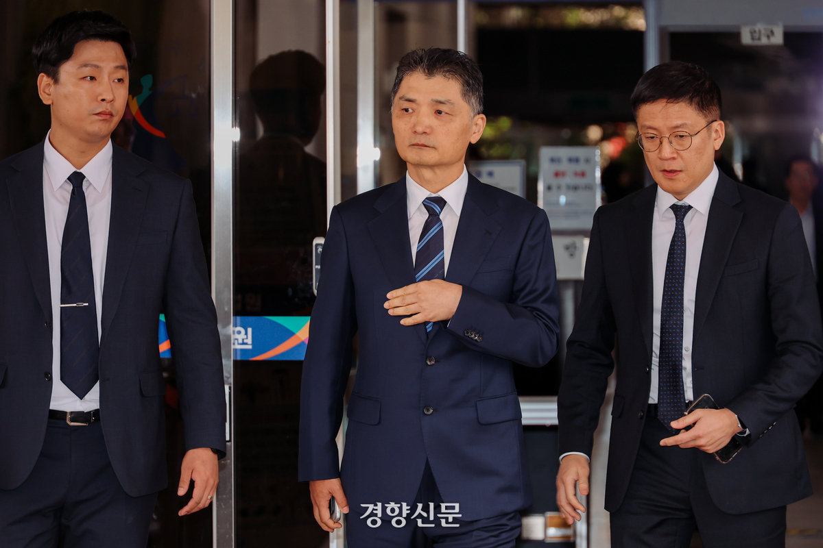 ‘SM엔터테인먼트 시세 조종 혐의 재판’에서 무죄를 선고받은 카카오 창업자 김범수 경영쇄신위원장이 21일 서울 양천구 남부지방법원을 나서고 있다. 이준헌 기자 |