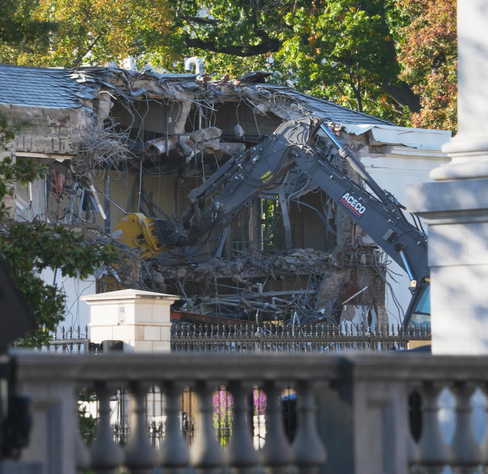 미국 워싱턴 백악관 내 대통령 부인의 업무실이 있던 이스트윙이 20일 철거되고 있다. 이 자리에 도널드 트럼프 대통령의 숙원 사업인 대형 연회장이 들어선다. 공사비만 2억5000만 달러(약 3576억 원)에 달한다.
