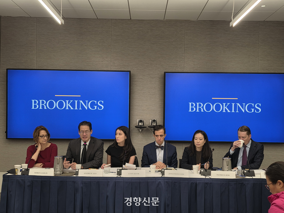 미 싱크탱크 브루킹스 연구소가 21일(현지시간) 워싱턴에서 APEC 전망 언론 브리핑을 하고 있다. |