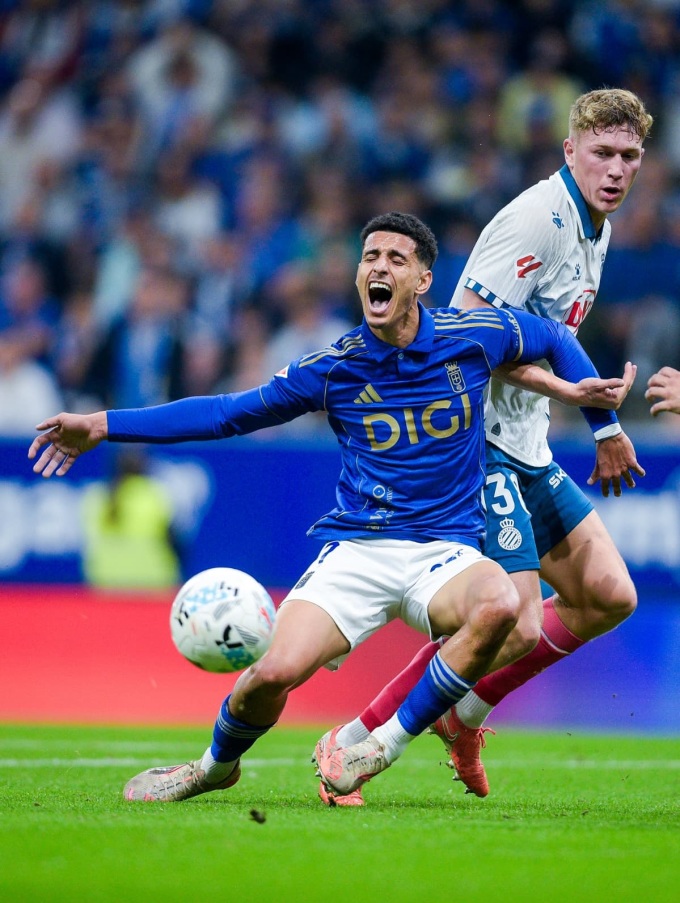 [서울=뉴스핌] 장환수 스포츠전문기자= 미국에서 리그 경기를 열기로 한 라리가 사무국의 결정에 반발해 18일 오비에도와 에스파뇰 선수들은 경기 시작 직후 15초간 침묵시위를 벌였다. 사진은 이날 경기 장면. [사진=오비에도] 2025.10.18 zangpabo@newspim.com |