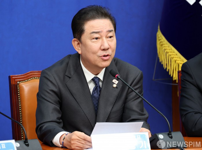 [서울=뉴스핌] 정일구 기자 = 김병기 더불어민주당 원내대표가 22일 오전 서울 여의도 국회에서 열린 최고위원회의에서 모두발언을 하고 있다. 2025.10.22 mironj19@newspim.com