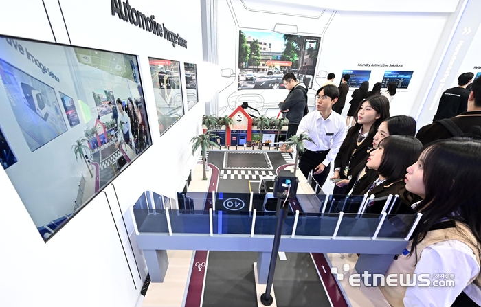 제27회 반도체대전이 22일 서울 강남구 코엑스에서 열렸다. 참관객이 삼성전자의 오토모티브 이미지센서 기술을 살펴보고 있다.