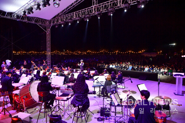 [스타데일리뉴스=서태양기자] '장성 황룡강 가을꽃축제'가 지난 18일 황룡정원 주무대에서 개막식을 열고 9일간의 여정을 시작했다. 지난 17일부터 내린 부슬비로 지난 18일 오전 첫 순서인 '플로깅' 행사는 취소됐다. 같은 날 오후에는 장성 지역 초등학생들로 구성된 '꿈 키움 드림 오케스트라'의 연주가 관객들에게 감동을 전했다.