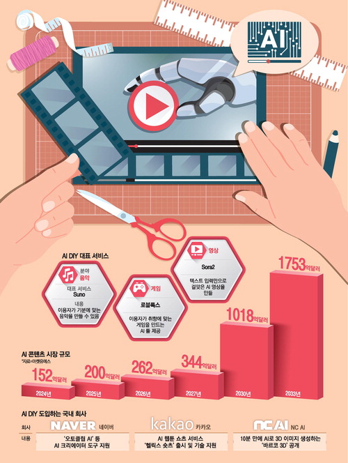 AI가 콘텐츠 제작을 도와주는 수준을 넘어 사용자가 스스로 콘텐츠를 창조하는 시대가 현실로 다가왔다. 정보기술(IT) 업계 관계자는 "과거에는 플랫폼이 콘텐츠를 공급했지만 이제는 이용자들이 플랫폼을 채워 넣는 구조로 바뀌고 있다"며 "일종의 AI 민주화가 '제2의 유튜브 혁명'을 만들 것"이라고 분석했다.