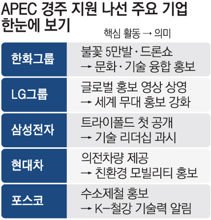 경주 일대를 둘러싸고 벌이는 기업들의 마케팅 전쟁이 뜨겁다. APEC 회원국 정상급 인사 16명과 글로벌 기업 최고경영자(CEO) 등 1700명이 한자리에 모이는 만큼, 브랜드 이미지를 세계에 각인 시킬 기회로 활용하고 있다.
