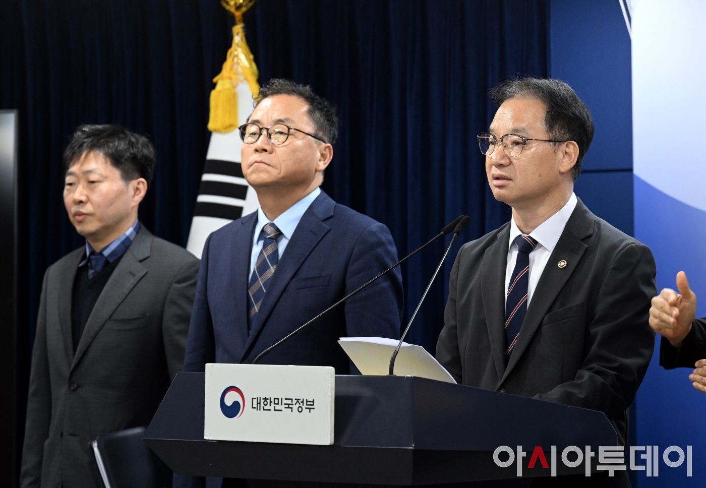 아시아투데이 박성일 기자 =김영수 국무조정실 국무1차장 이 23일 오전 서울 종로구 정부서울청사 브리핑룸에서 열린 이태원 참사 합동감사 결과 관련 브리핑에 참석해 발언을 하고 있다.