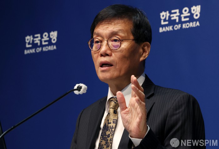 [서울=뉴스핌] 사진공동취재단 = 이창용 한국은행 총재가 23일 서울 중구 한국은행에서 열린 금융통화위원회 금리 결정에 대한 기자간담회에서 발언하고 있다. 2025.10.23 photo@newspim.com