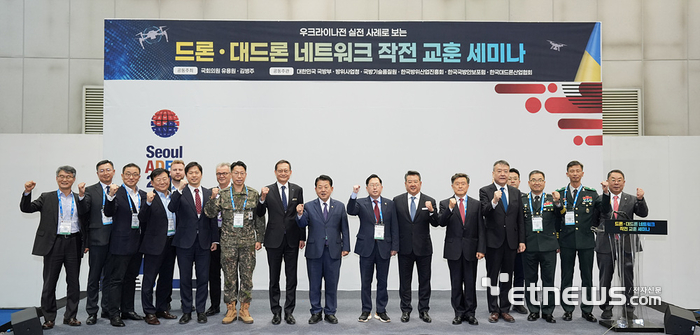 국회 유용원 의원(국민의힘)과 김병주 의원(더불어민주당)이 공동 주최하고, 국방부·방위사업청·국방기술품질원·한국방위산업진흥회·한국국방안보포럼·한국대드론산업협회가 공동 주관한 '우크라이나전 실전사례로 보는 드론·대드론 네트워크 작전 교훈 세미나'가 22일 오전 일산 킨텍스 서울 ADEX 2025 현장에서 성황리에 개최됐다.